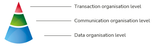 To complete the picture and show the interrelationship with data, Enterprise Ontology offers a 3-tier view of how business organisations depend on each other. Again, transactions are key. The 2 lower levels only exist as a consequence or corollary of the transactions happening: