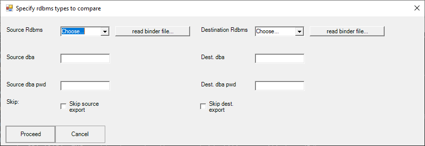 This wizard allows you to compare two different versions of the same repository. The first CompareUDevelop dialog looks like this: