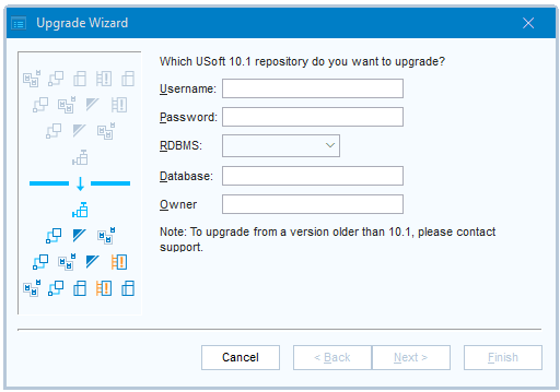 To upgrade to USoft 11.0, first upgrade to USoft 10.1. Then, upgrade to USoft 11.0 as a separate action.