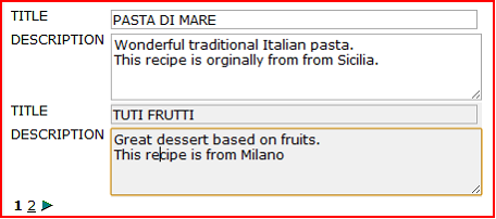 In the web application, several rows are displayed as multiple Replicated Columns Controls. For example, in the following screenshot, you can see three rows, where the second row is the selected row: